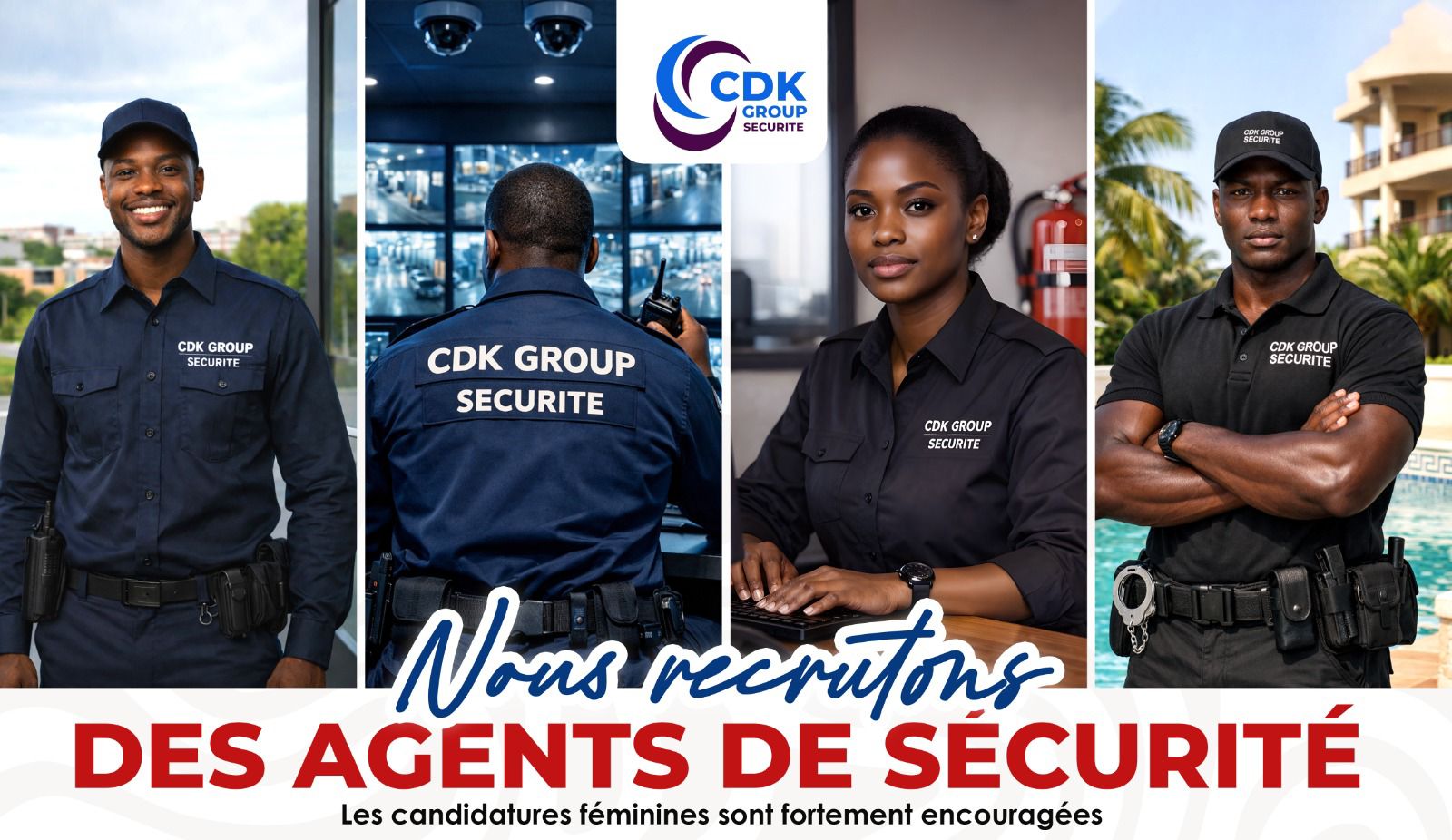 Au-delà de cette campagne de recrutement, CDK GROUP SÉCURITÉ propose une gamme complète de prestations destinées aux entreprises, institutions et particuliers. Parmi ses principaux services figurent la surveillance et le gardiennage, l’escorte VIP et la protection rapprochée, la sécurité incendie et la formation, la télésurveillance avec reporting en ligne, la vidéosurveillance et le contrôle d’accès, ainsi que l’entretien résidentiel et commercial et le service de chauffeur.