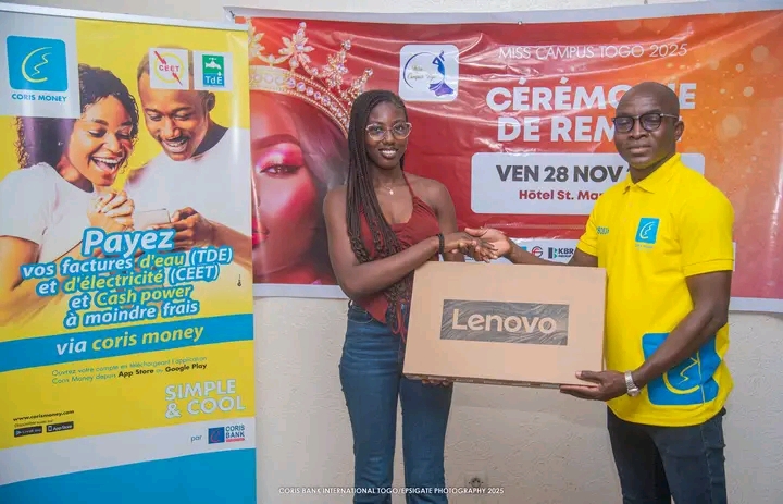 Coris Bank International Togo a une nouvelle fois démontré son engagement envers la jeunesse, l’innovation et l’éducation en prenant part, via sa solution digitale Coris Money, à la prestigieuse cérémonie de remise des récompenses de Miss Campus Togo 2025, tenue à Lomé.