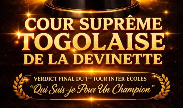 Date : 7 avril, Heure : 13h GMT Lieu : Atakpamé, Le lieu, la date et l’heure sont désormais officiels après une longue période de réflexion. C’est à cette échéance que se tiendra l’unique COUR SUPRÊME TOGOLAISE DE LA DEVINETTE, chargée de la délibération officielle du Grand Concours National Inter-Écoles dénommé : « Qui Suis-je Pour Un Champion »