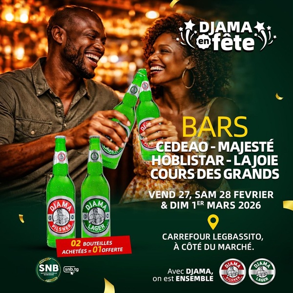 Baptisé « Djama en Fête », l’événement se déroule simultanément dans cinq bars situés au carrefour Légbassito, à côté du marché, dans la commune d’Agoè-Nyivé 2. Les établissements concernés sont, CEDEAO, Majesté, Hoblistars, La Joie et Cour des Grands, vibrent au même rythme durant trois jours exceptionnels les vendredi 27, samedi 28 février et dimanche 1er mars 2026.