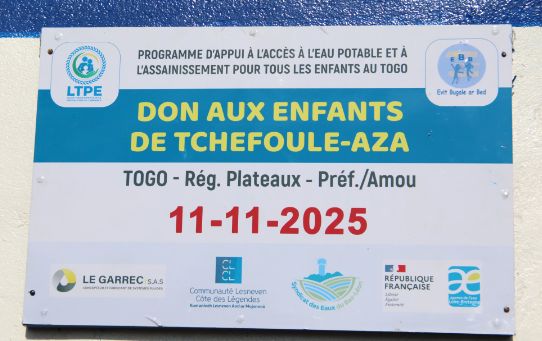 La Ligue Togolaise pour la Protection de l’Enfance (LTPE), avec le soutien financier de l’association française Evit Bugale ar Bed (EBB) et, en partenariat avec plusieurs structures, LE GARREC, la Communauté Lesneven Côte des Légendes (CLCL), le Syndicat des Eaux du Bas-Léon, et l’Agence de l’eau Loire-Bretagne, a procédé mardi 11 novembre 2025 à la remise officielle d’un forage solaire dans le village de Tchefoulè-Aza, situé dans la Commune d’Amou 2, Préfecture d’Amou, Région des Plateaux.