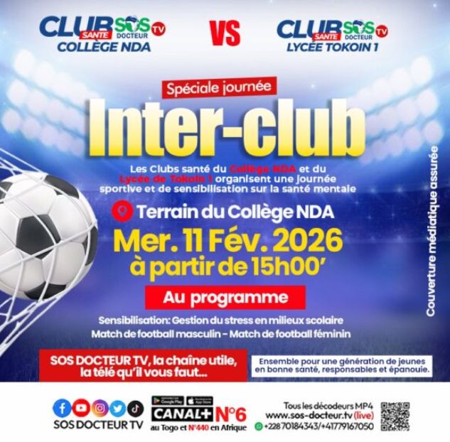 Les Clubs Santé du Collège Notre Dame des Apôtres (NDA) et du Lycée de Tokoin 1 unissent leurs forces pour une grande journée inter club placée sous le signe de la jeunesse, de la santé mentale et du sport scolaire. L’événement se tient ce mercredi 11 février 2026 sur le terrain du Collège NDA à Lomé.
