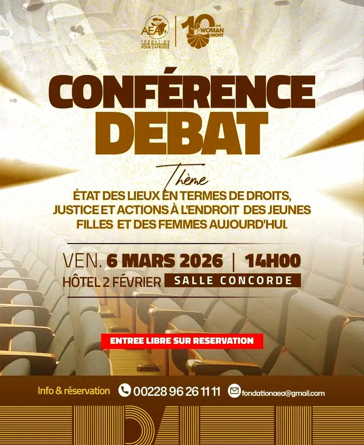 Prévue pour le vendredi 06 mars 2026 à 14h00 à l’Hôtel 2 Février à Lomé, dans la Salle Concorde, cette rencontre se veut un cadre privilégié d’échanges, de réflexion et de propositions concrètes en faveur de la promotion et de la protection des droits des femmes et des jeunes filles.